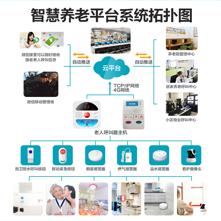 老人呼叫系统主要应用于家里有老人或小孩,如老人或者小孩出现突发情况,可按下报警按钮,主机会自动拨打6组电话或者报警到老人接警平台;同时该款产品配合烟感,煤气泄漏,门磁等探测感应器还可以扩展防火,防煤气泄漏,防盗报警使用,在防范地点安装好主机后,设置在布防状态。若发生火灾,煤气泄漏或盗贼闯入防范区域,主机立即发出喇叭声报警,并且同时自动拨打预先设置的固定电话或者移动电话通报警情。